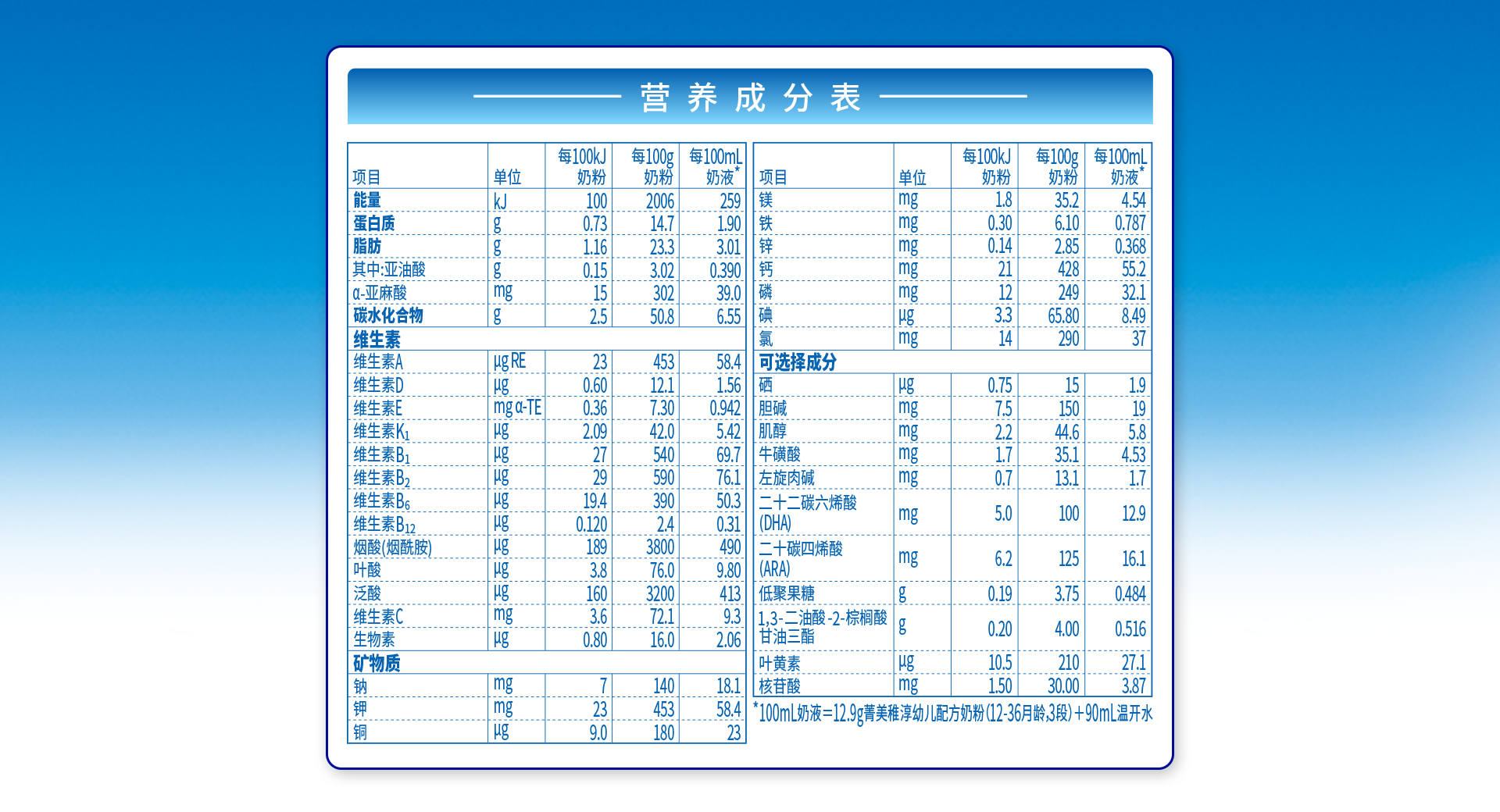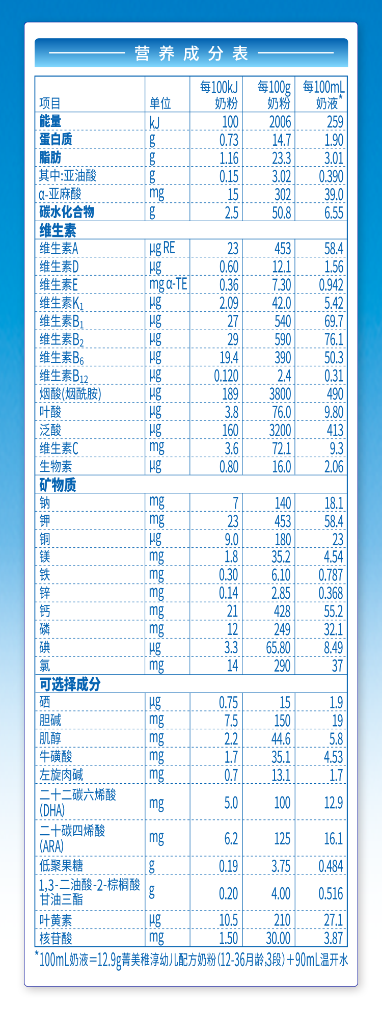 營(yíng)養(yǎng)成分表