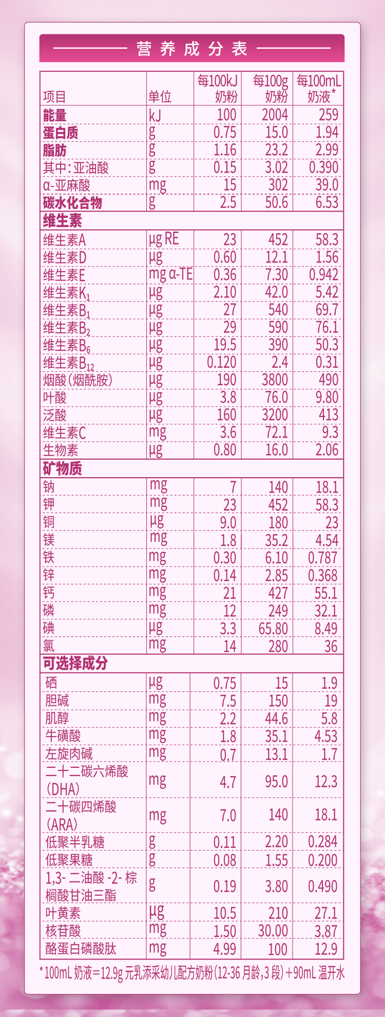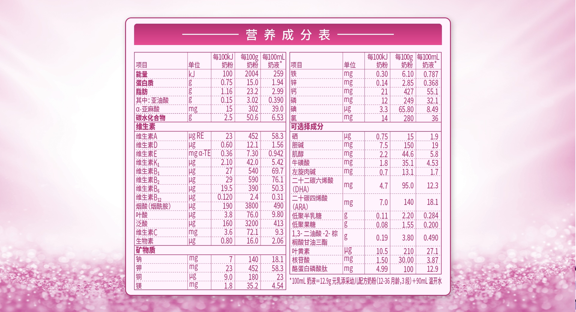 營(yíng)養(yǎng)成分表